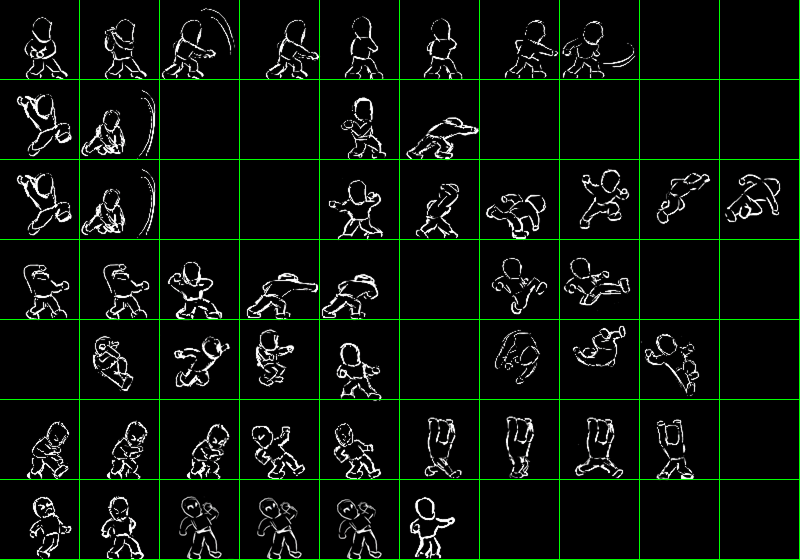 提到这个格斗游戏的原因是因为,第一,它真的很好玩;第二,它在里面有很多角色,其中有一个角色,我管他(们)叫空白人。下图是我从游戏资源文件夹里直接找到的素材(如有侵权,请联系我删除)。这个空白人跟其他角色的不同点在于,他(们)除了最基础的拳脚之外,搓不出任何其他技能。在色彩缤纷的角色中,这个线条勾勒的角色也显得单调而格格不入。